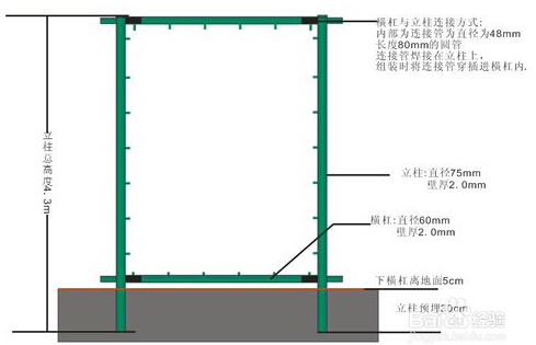 二、接下來就是套管了,立柱的上部和下部兩端焊接出375px左右的套管,用來插接橫管。插接上橫管后體育場圍網(wǎng)的框架就形成了。